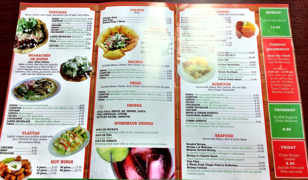 Chorizo, Asada , Carnitas, Carnitas, Chicken ,Cecina, Chicharon , Carnes Enchilada ,